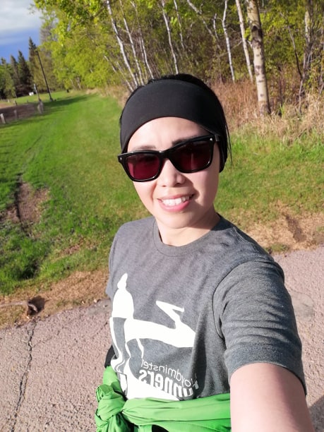 Bio: 31 yrs old, I have a 3 year old son named Kalil and Sam is my husband whom are so crazy supportive in my running journey!. I work for the City of Lloydminster as an Administrative Assistant. I do not have any other hobby, not an athletic person at all and I never imagined in my life that I will be running or racing. Sam and I came to Canada in 2011 from the Philippines. My day starts at 4:30 am and ends usually 9pm. My fave time to run is in the morning before going to work with just coffee in my belly!